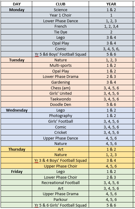 • We will offer children as many clubs as we can but there is no guarantee that children will be offered more than one club.​